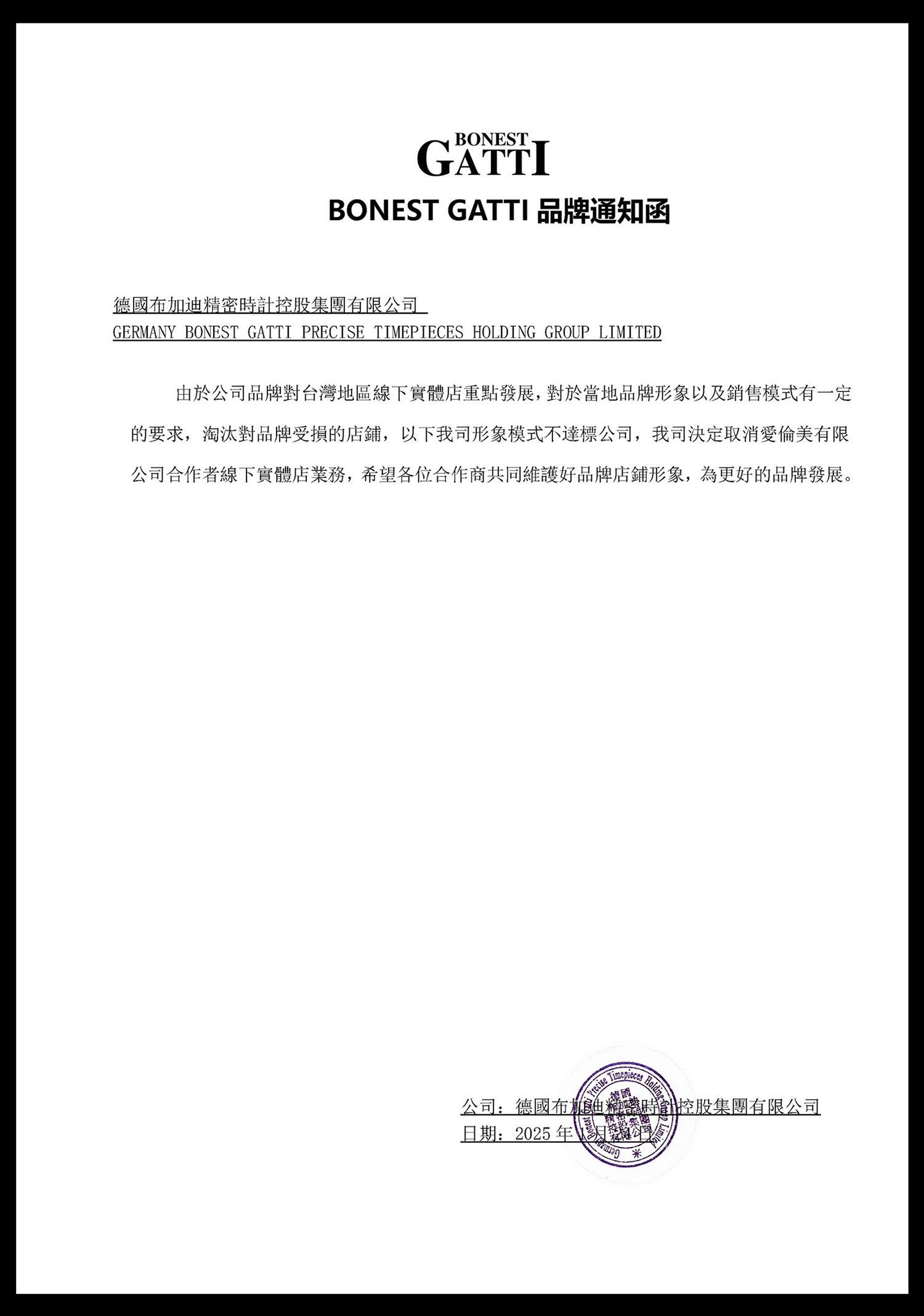 為了保障消費者權益,並強化品牌售後服務體驗,寶加地 Bonest Gatti 僅提供官方授權之經銷通路【原廠商品保固】與【原廠商品保修】等一系列完善的售後服務,其餘來源不明的商品,無論計價與否,恕不受理。