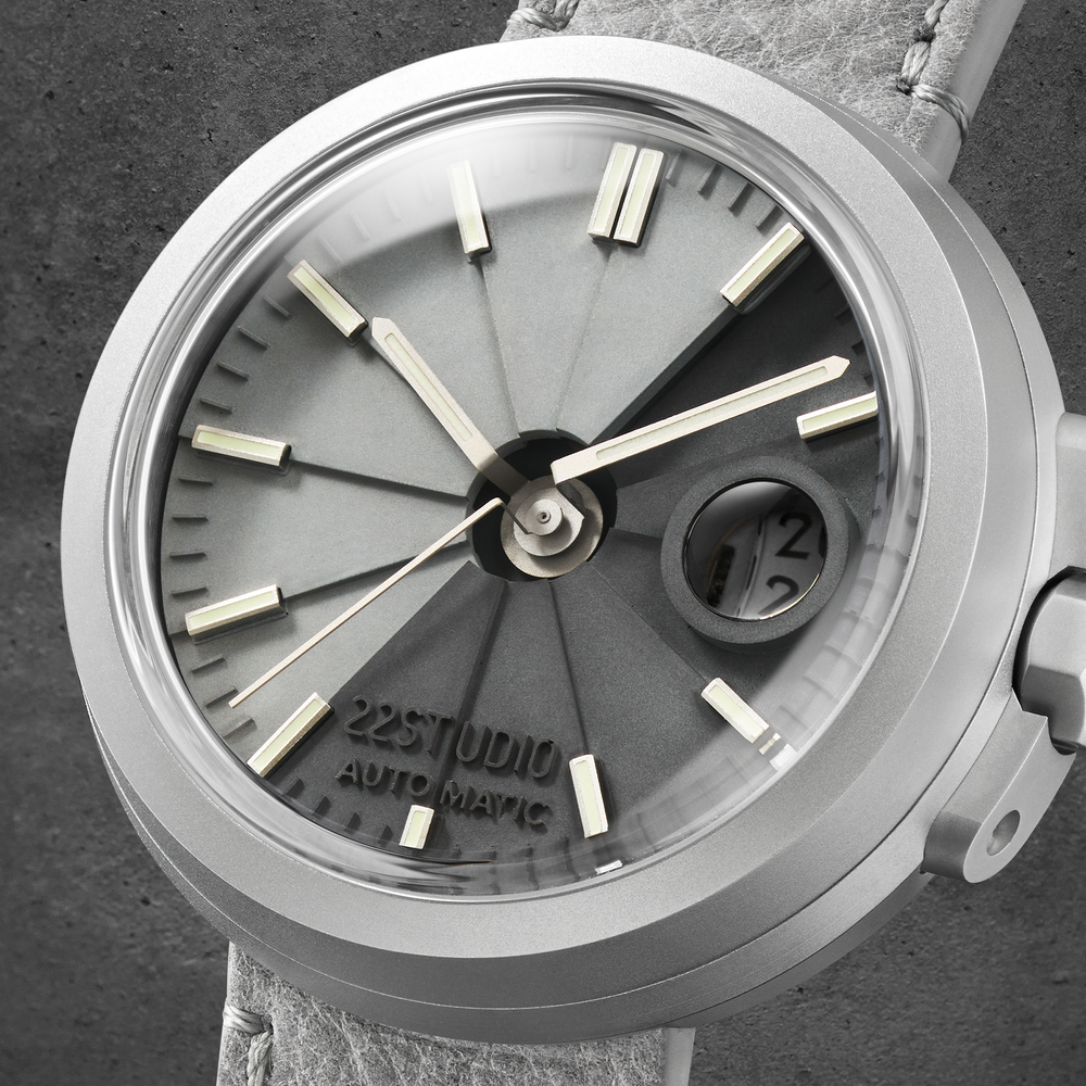 The water molding method is the ultimate expression of cement technology. In order to present a delicate and original charming texture, it absolutely relies on meticulous molds and precise construction. All water mold dials of 22STUDIO are hand-made at the Dihua Street headquarters in Taipei. They use an exclusive formula of cement and add sustainable recycled aggregates, which can quickly solidify and shape, with low shrinkage and high strength.