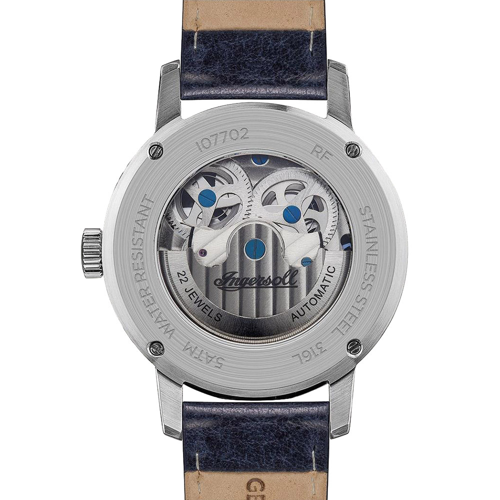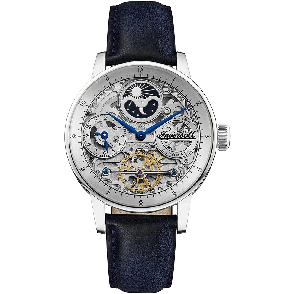Ingersoll 1892 The Jazz Dual Time Automatic Mens Watch with White Dial and Blue Leather Strap - I07701