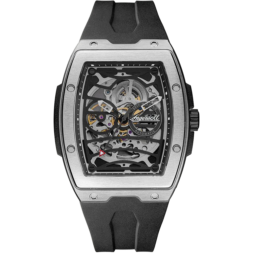 Ingersoll 1892 The Challenger Automatic Mens Watch with Black/Silver Dial and Black PU Rubber Strap - I12301