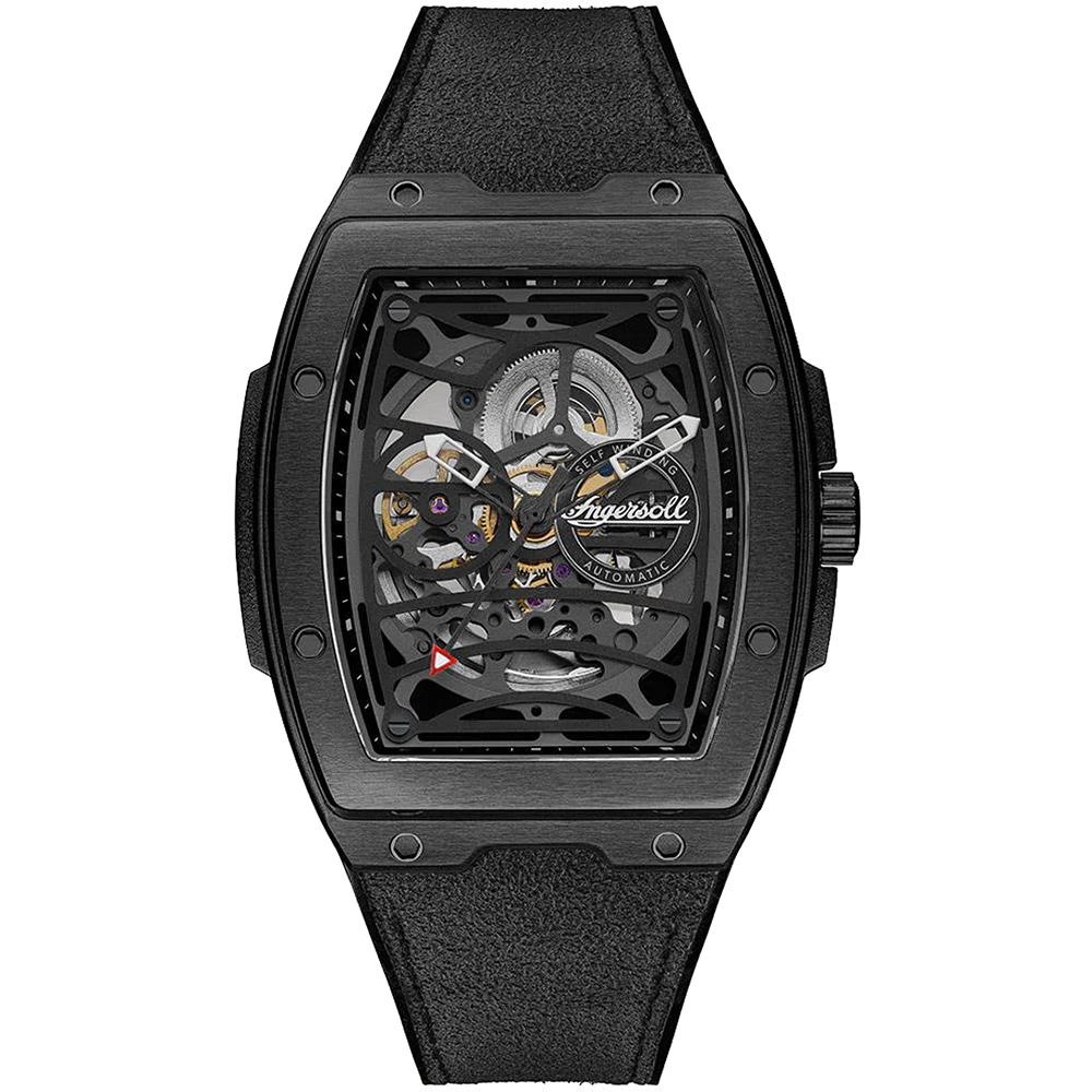 Ingersoll 1892 The Tennessee Automatic Mens Watch with Black Dial and Black PU /Alcantara Strap - I13107.