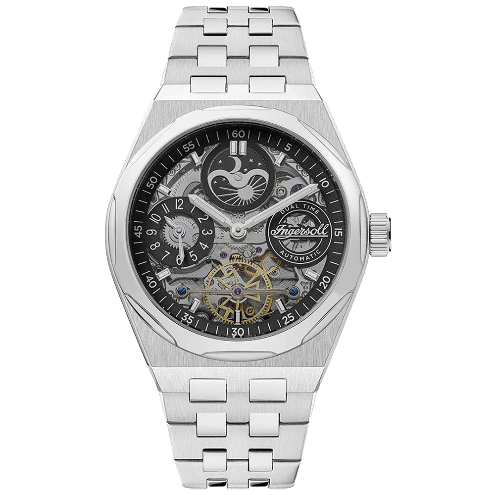 Ingersoll 1892 The Broadway Dual Time Automatic Mens Watch with Black Dial and Stainless Steel Bracelet - I12901