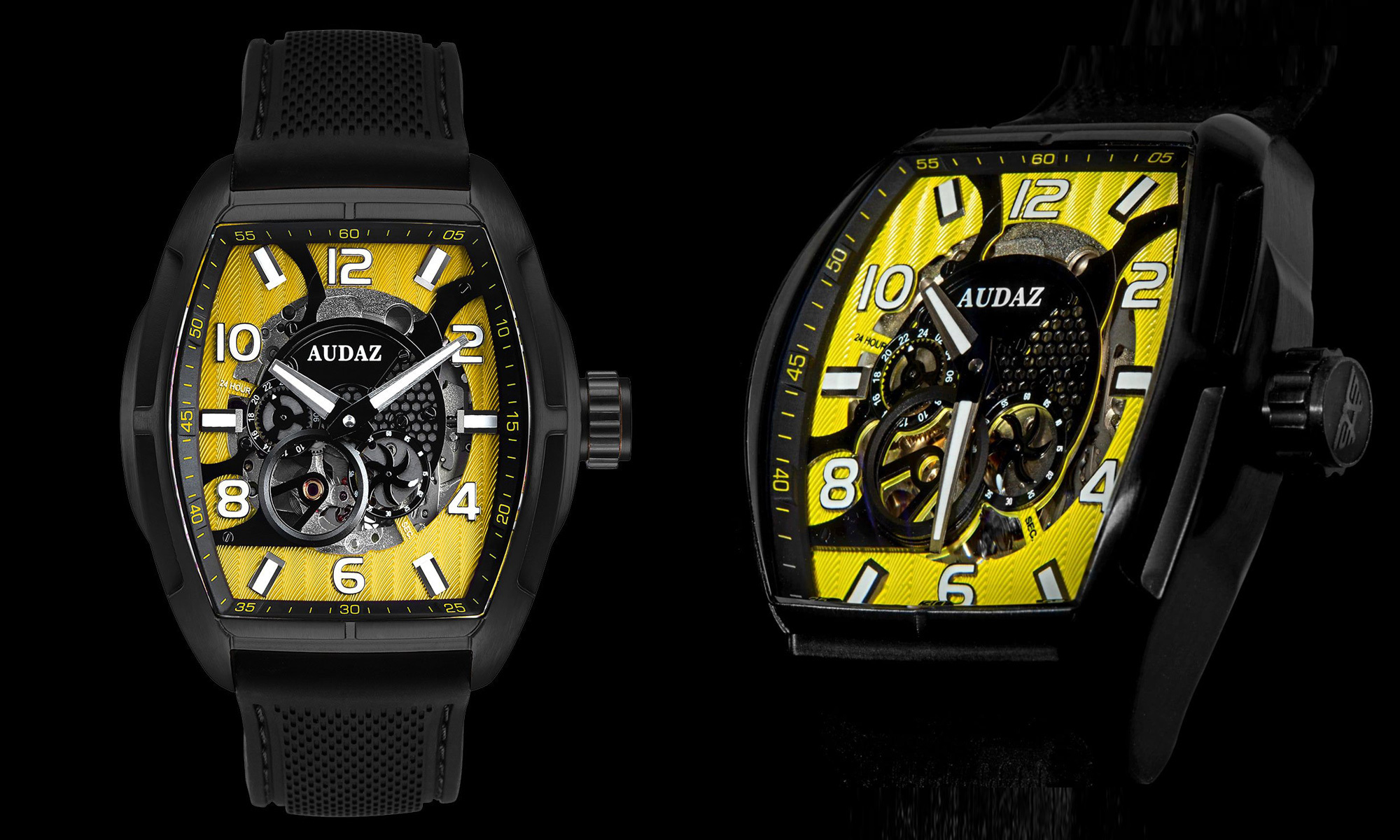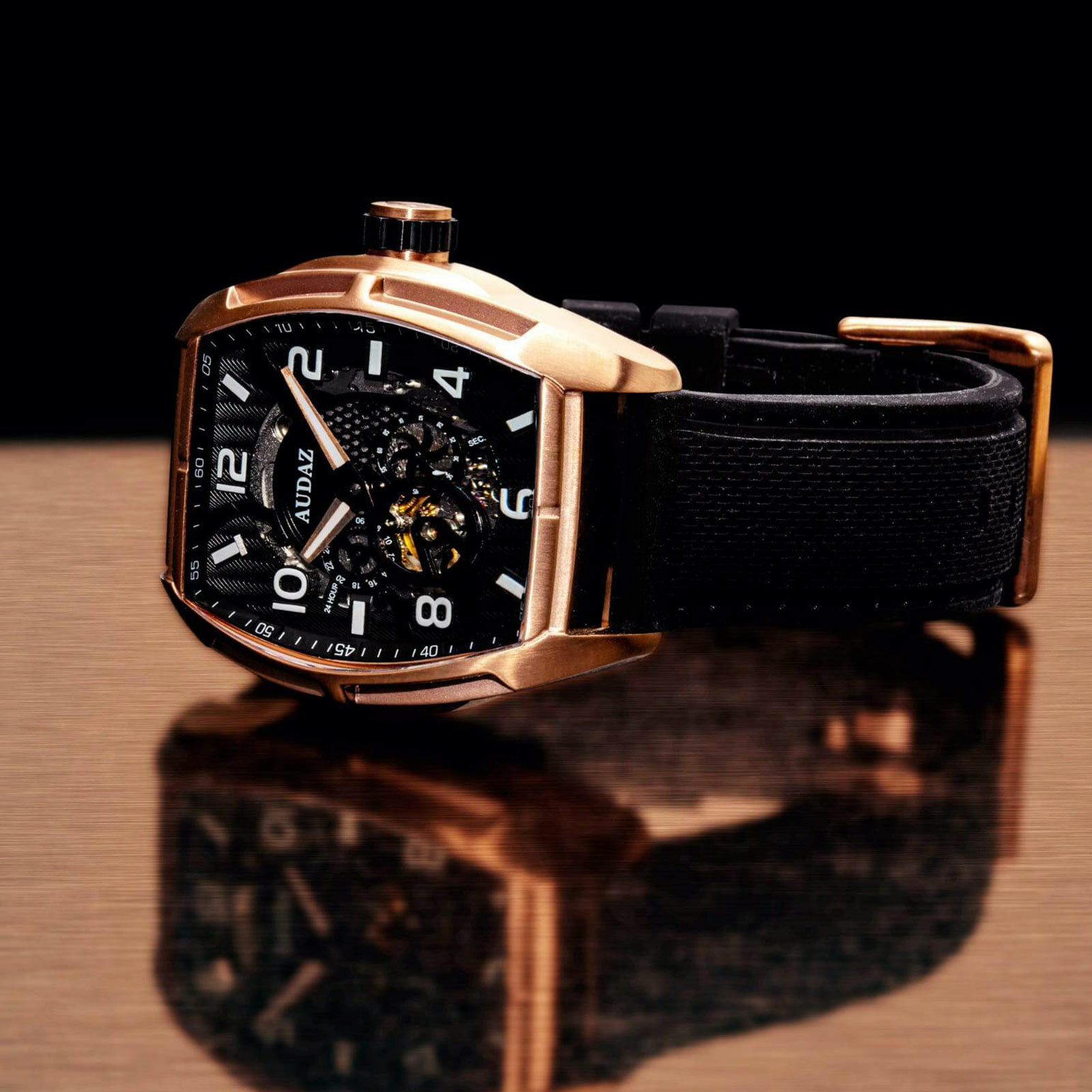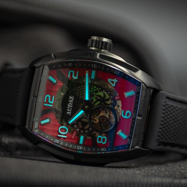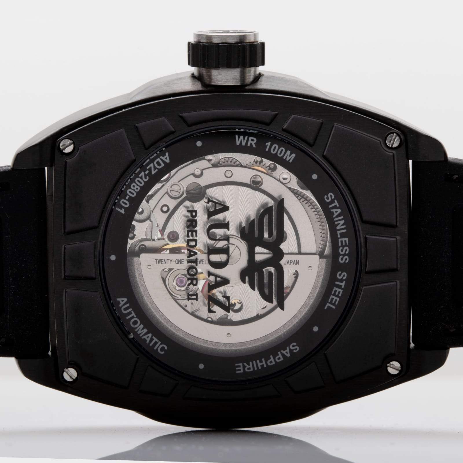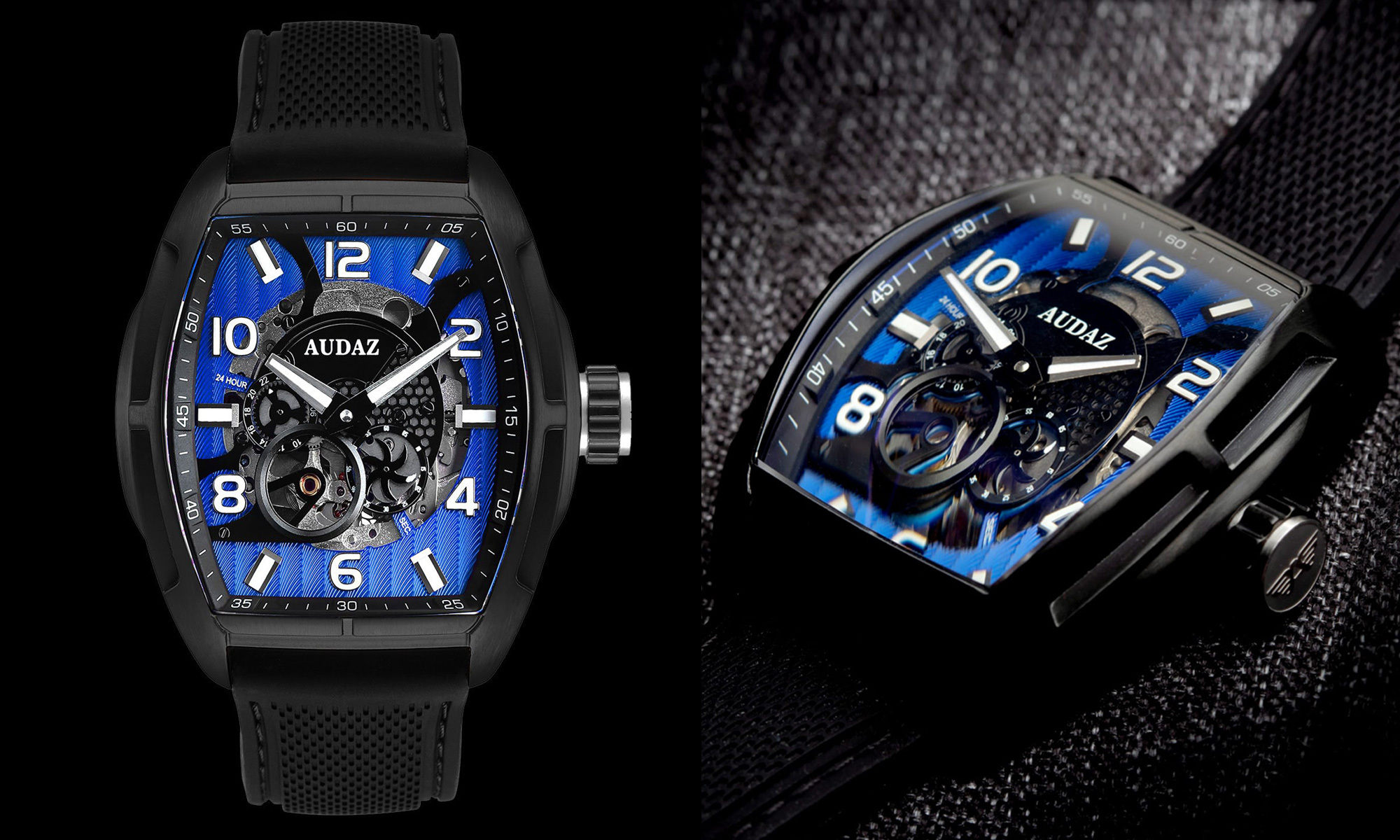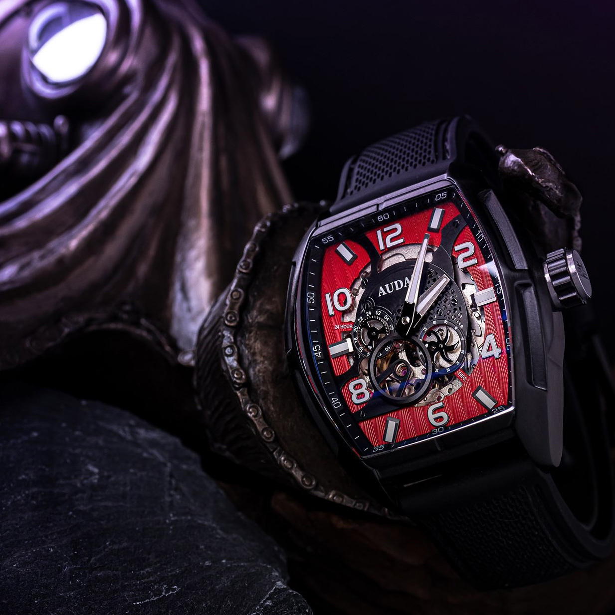 除了潛水錶外,Audaz Watches還包括一款酒桶形錶殼的【Predator II 戰神】運動錶款以滿足喜愛追求與眾不同的錶迷。酒桶形錶殼一般都以古典錶款之姿呈現,但近年來不少品牌將酒桶造型改良,以大膽粗獷的線條紋理,搖身一變成為獨樹一格的運動休閒錶款。