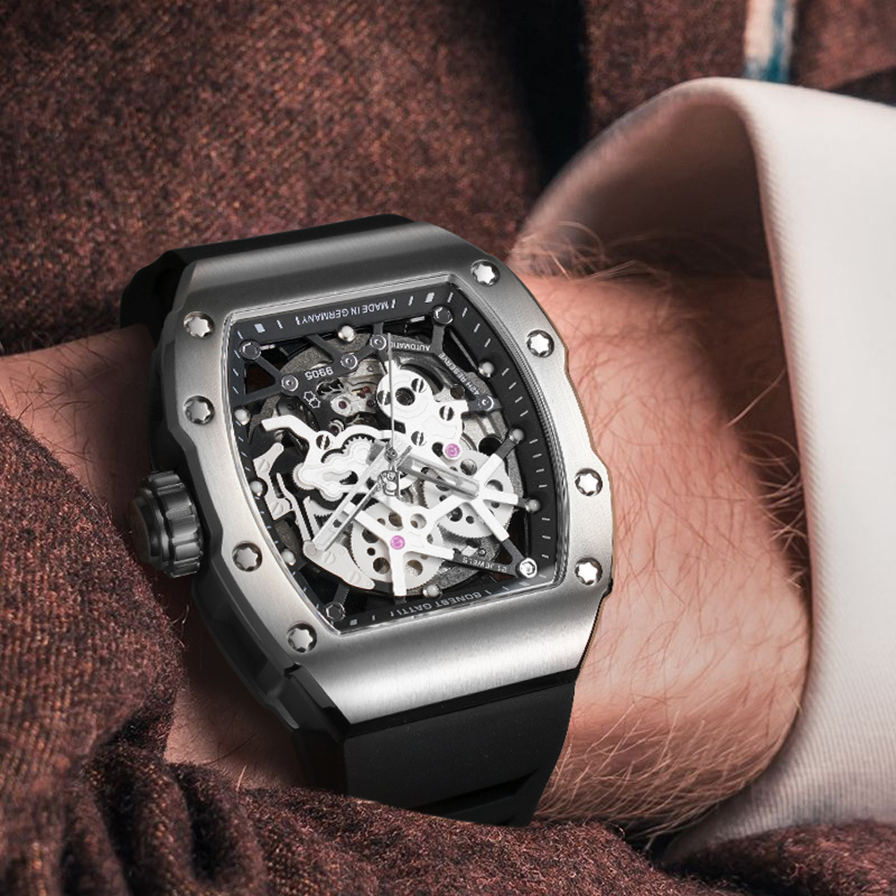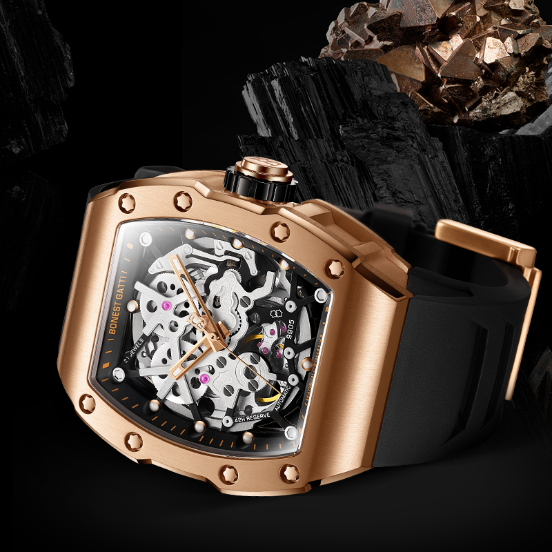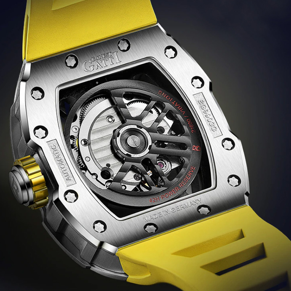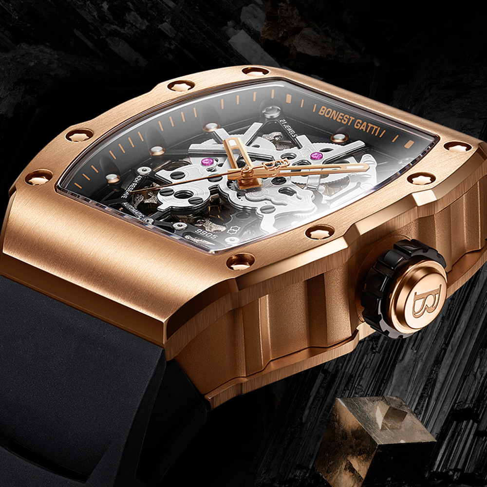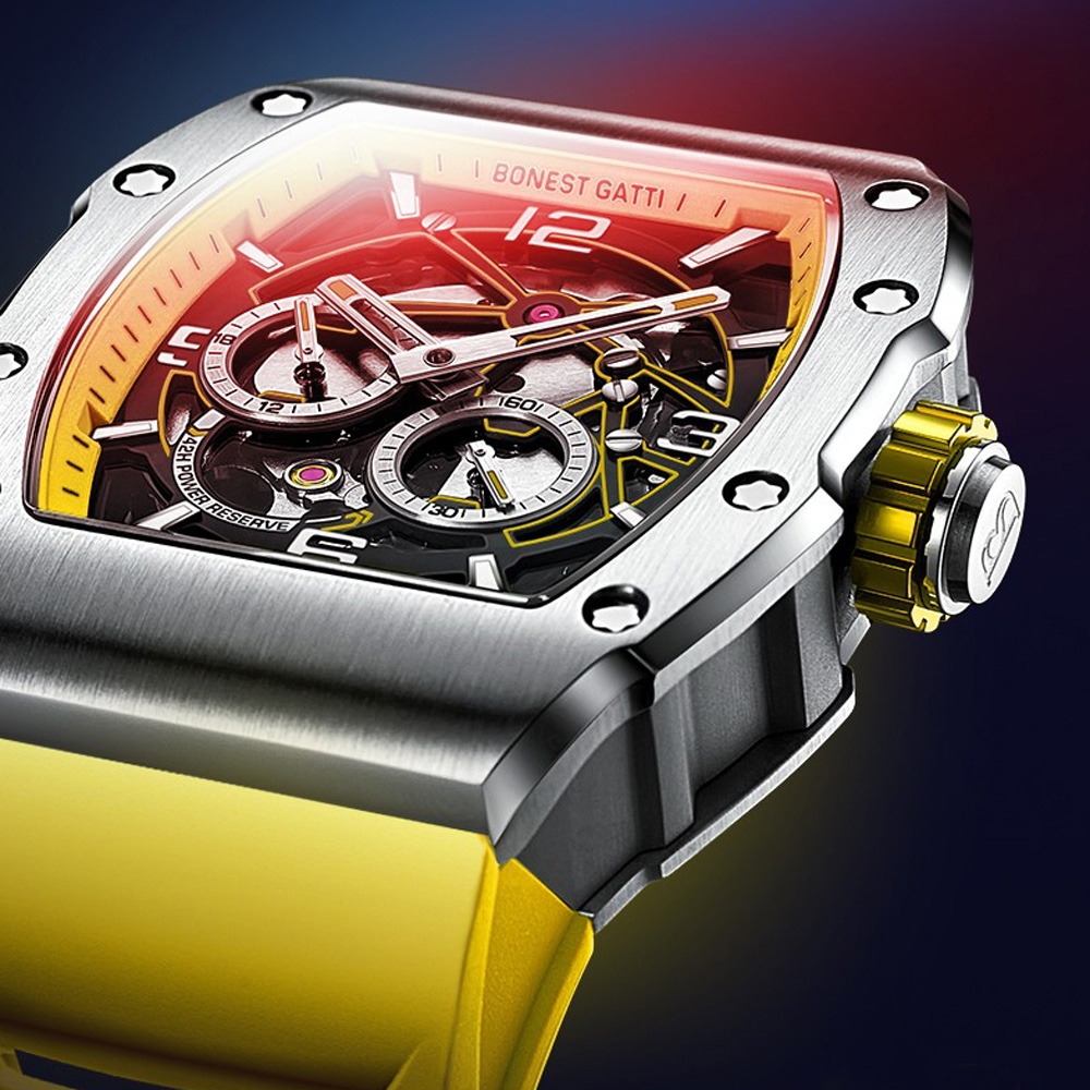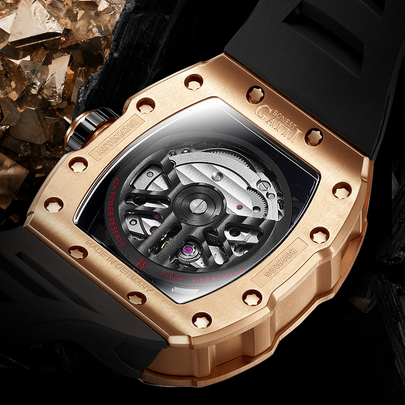 基於對傳統機械結構的熱愛,【BONEST GATTI】全系列錶款皆採用機械機芯,為了彰顯與眾不同的品味,【BONEST GATTI】每款腕錶都以混搭撞色與多層次結構設計,讓材質配色與機械結構之間能夠巧妙展現潮流與動感,滿足時下使用者求新求變的多元需求!