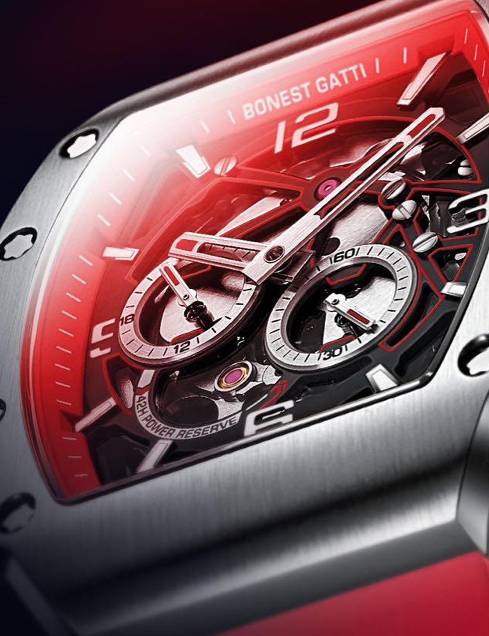 近年來運動錶已成為腕錶市場的熱門,然而運動錶的樣貌卻並沒有太大的變革。相較於文質彬彬的經典腕錶,錶迷們想藉由運動錶尋求更多展現自我個性的機會,但往往還是覺得「少一味」。新興的創意腕錶品牌【BONEST GATTI 】,是由一群對於腕錶設計及極速運動有著相同熱愛的年輕朋友們所成立,他們深感市售腕錶無法展現真正自我,於是興起打造一只既能展現自我又能追求潮流設計的品牌想法。