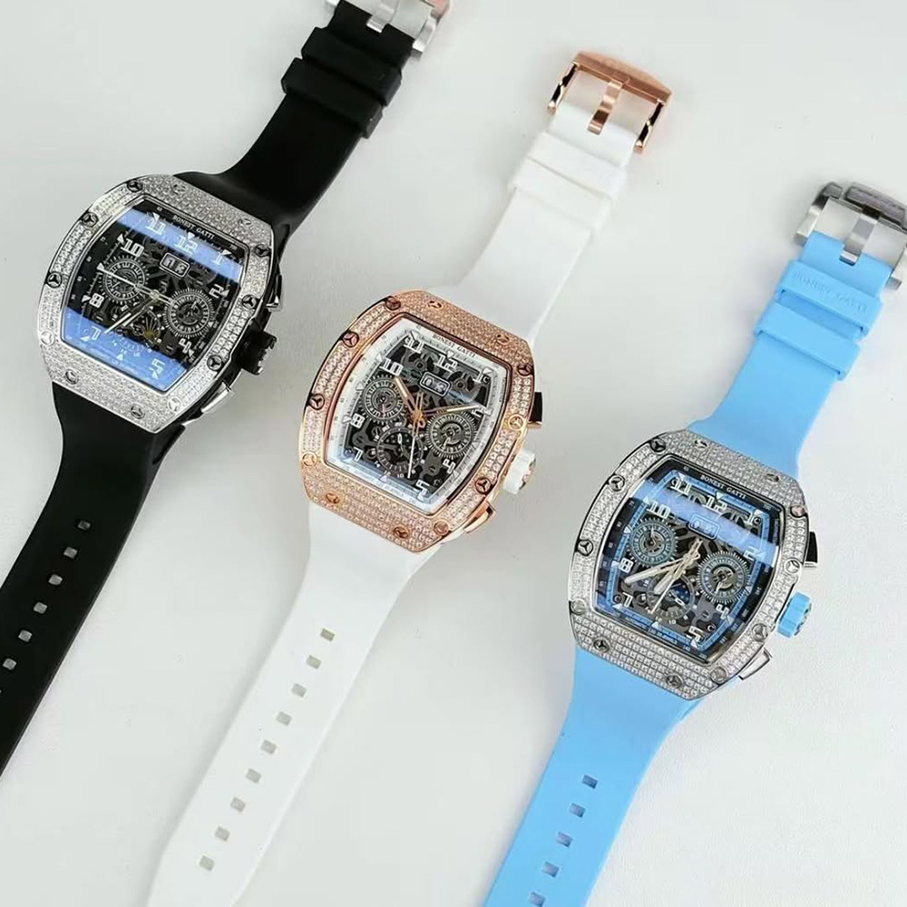 BONEST GATTI 寶加地【晶鑽魅影】共有三款顏色,分別為透光白與煙燻黑以及水晶黃,以提供熱愛賽車的錶迷多重選擇,其中黑色錶款搭配黑色橡膠錶帶,展現低調奢華的質感;黃色則是搭配奔牛黃橡膠錶帶,營造出賽車般搶眼的視覺效果;白色錶款最為特別,以湛藍色系點綴設計細節,在藍寶石水晶玻璃的映照下,感受無與倫比的華麗體驗。最後,錶冠以輪圈造型呈現,橡膠錶帶則像是輪胎一般,是穩定移動的關鍵,象徵掌握人生方向,並朝著夢想前進。