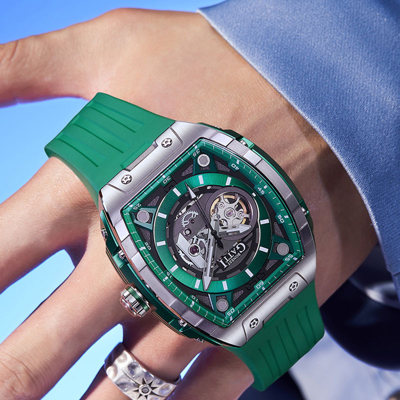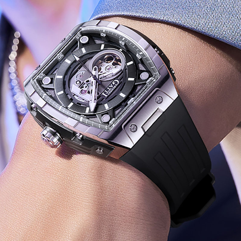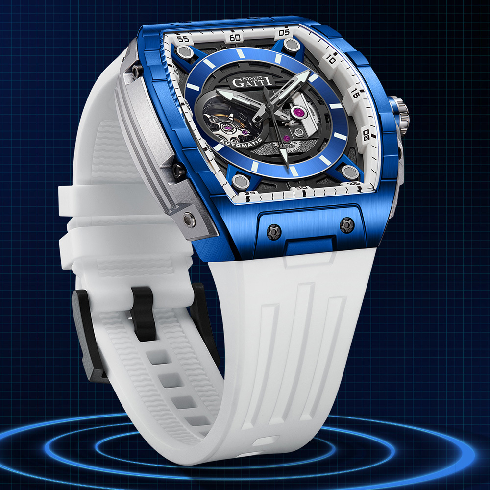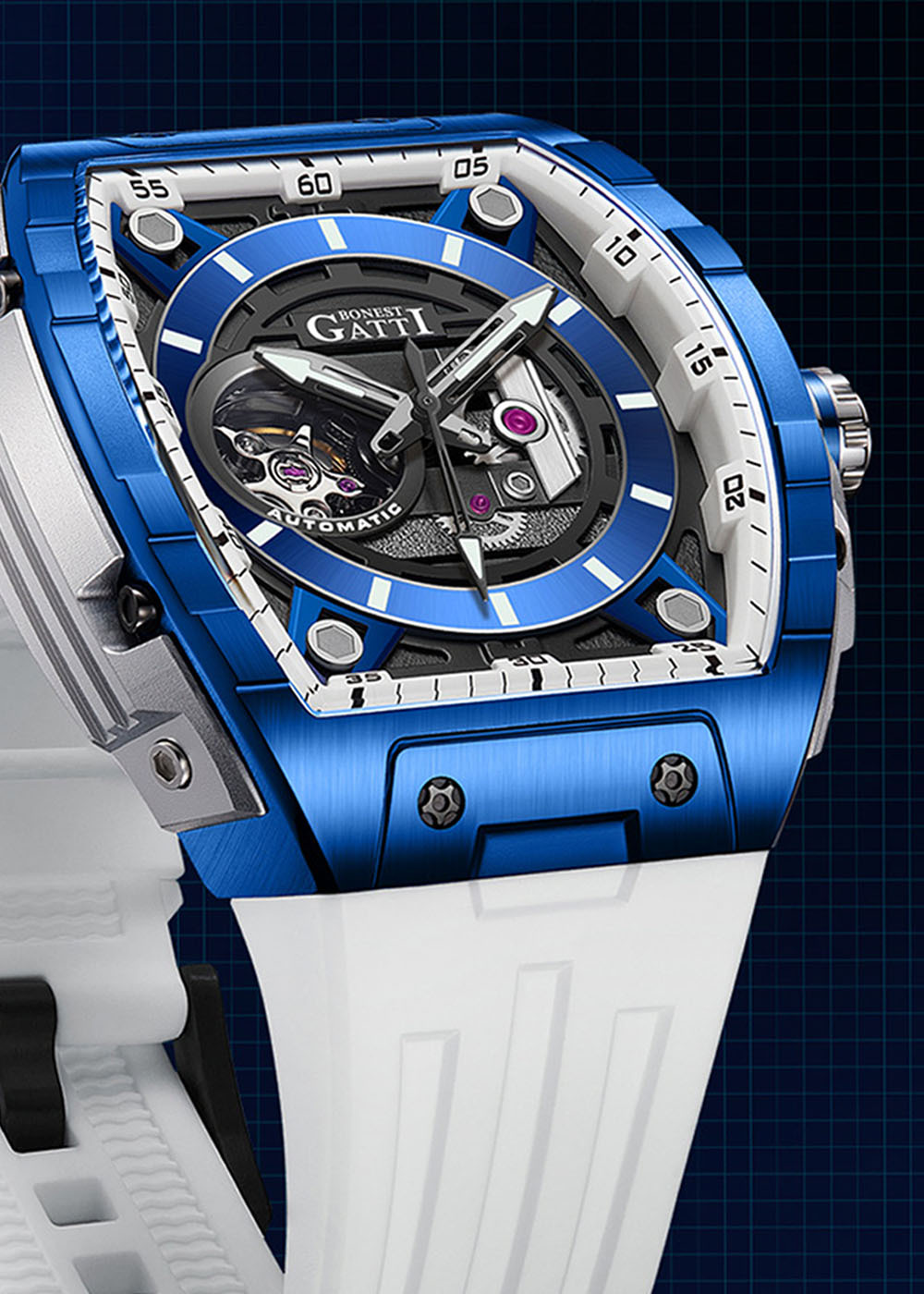 BONEST GATTI 寶加地《Urban Speed都會競技F1系列》主體結構完全以鏤空機芯呈現,讓運動錶有了截然不同的味道。鏤空機芯的線條靈感來自一級方程式賽車的流線元素,大膽前衛的撞色與層層堆疊的腕錶結構,更是將機械美學展現的淋漓盡致!
