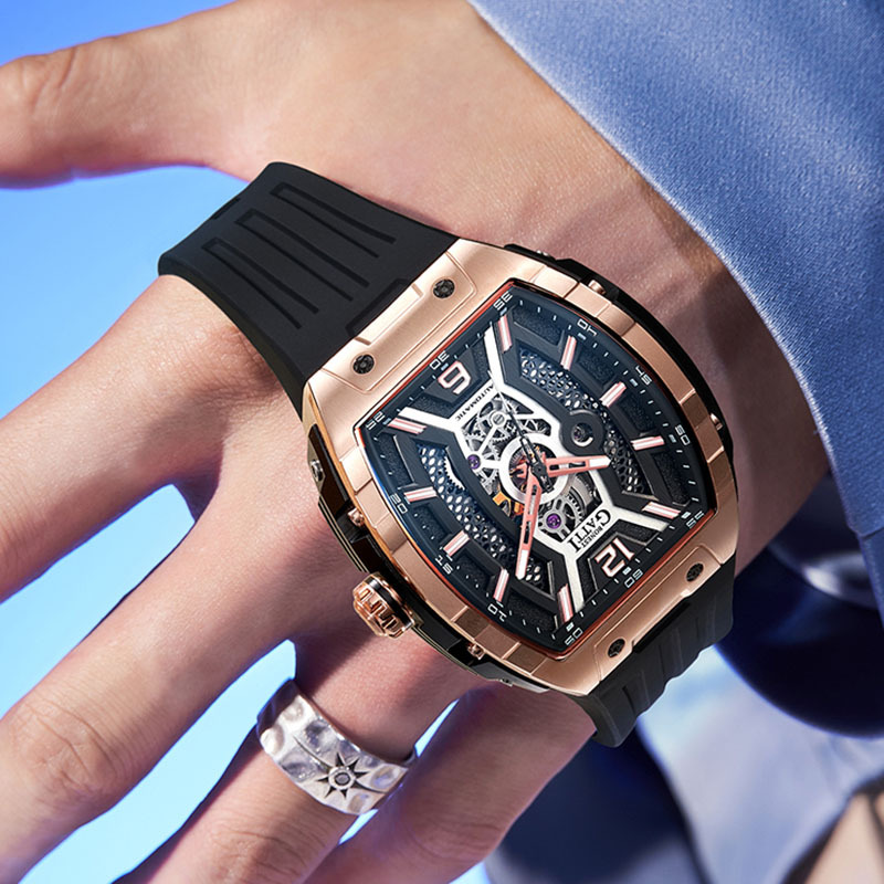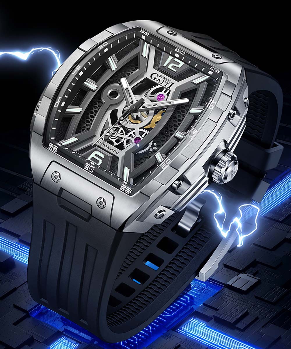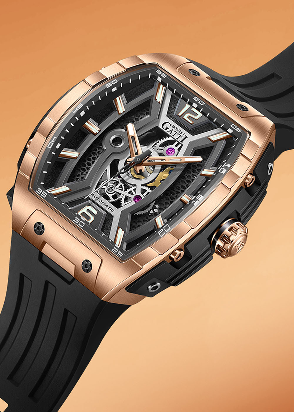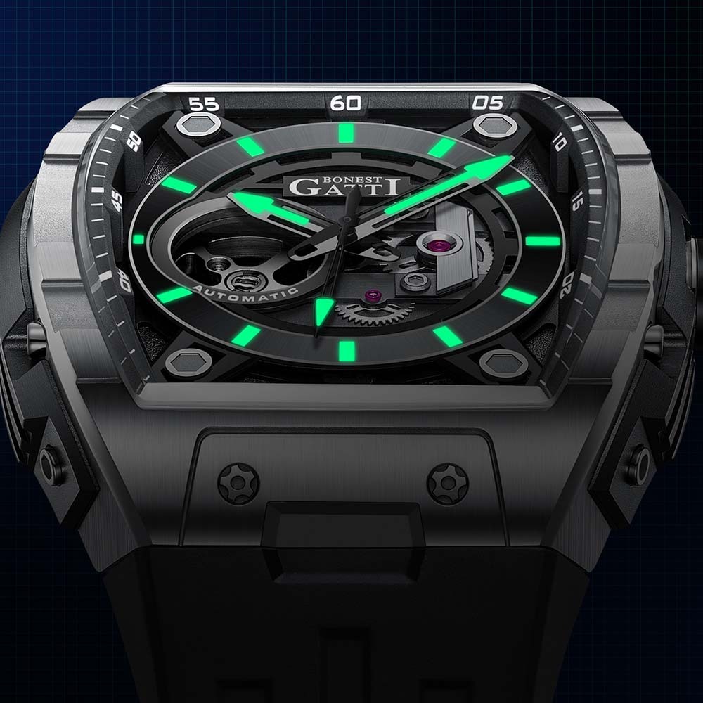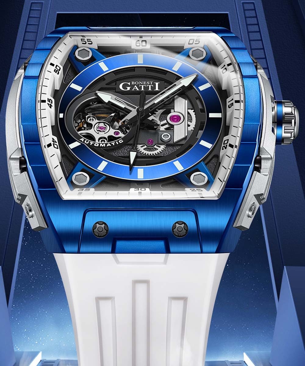 基於對傳統機械結構的熱愛,【BONEST GATTI】全系列錶款皆採用機械機芯,為了彰顯與眾不同的品味,【BONEST GATTI】每款腕錶都以混搭撞色與多層次結構設計,讓材質配色與機械結構之間能夠巧妙展現潮流與動感,滿足時下使用者求新求變的多元需求!