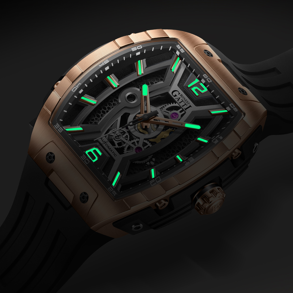 敢於別人所不敢的嘗試,【BONEST GATTI】魅影系列以鏤空機芯呈現,讓運動錶有了截然不同的味道。鏤空機芯的線條感來自超跑的流線元素,而大膽前衛的撞色與層層堆疊的錶盤設計,更是將機械美學展現的淋漓盡致!