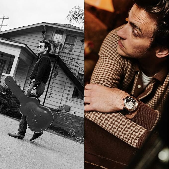 位於美國南部的田納西洲(Tennessee),是美國的音樂聖地,也是美國鄉村音樂的中心。以此為名的The Tennessee田納西錶款,以45.5mm大錶徑呈現濃厚的古典懷錶風格。面盤下方醒目的雙擺輪鏤空橋板的設計,猶如展翅的蝴蝶;偏心時、分錶盤及小秒盤位於面盤上方,帶放射狀的紋路與面盤菱格紋機刻雕花,營造出古樸的層次感。The Tennessee田納西錶款共有不鏽鋼配黑灰面盤,以及不鏽鋼鍍玫瑰金配淺灰面盤兩種選擇。
