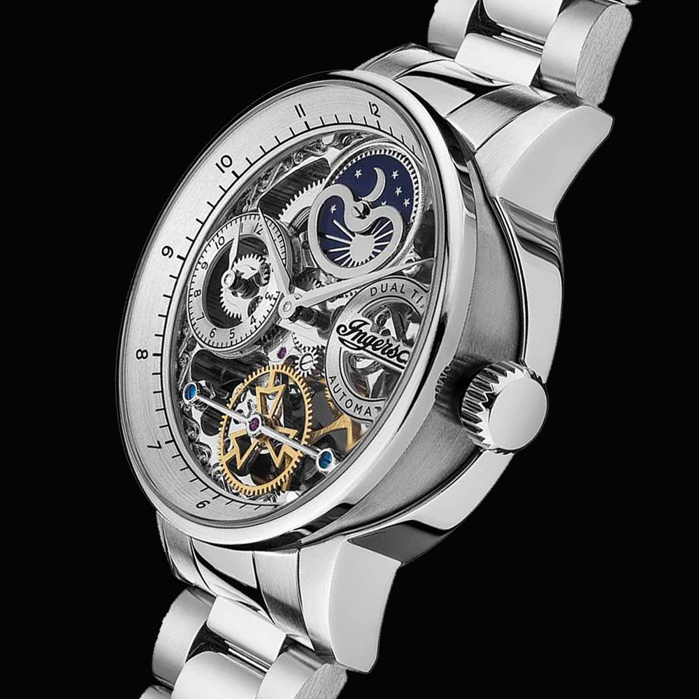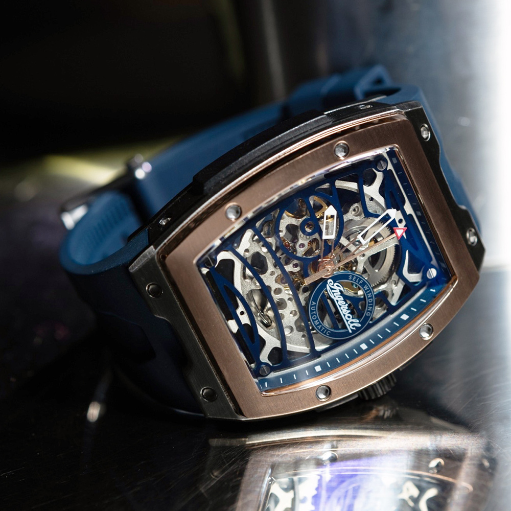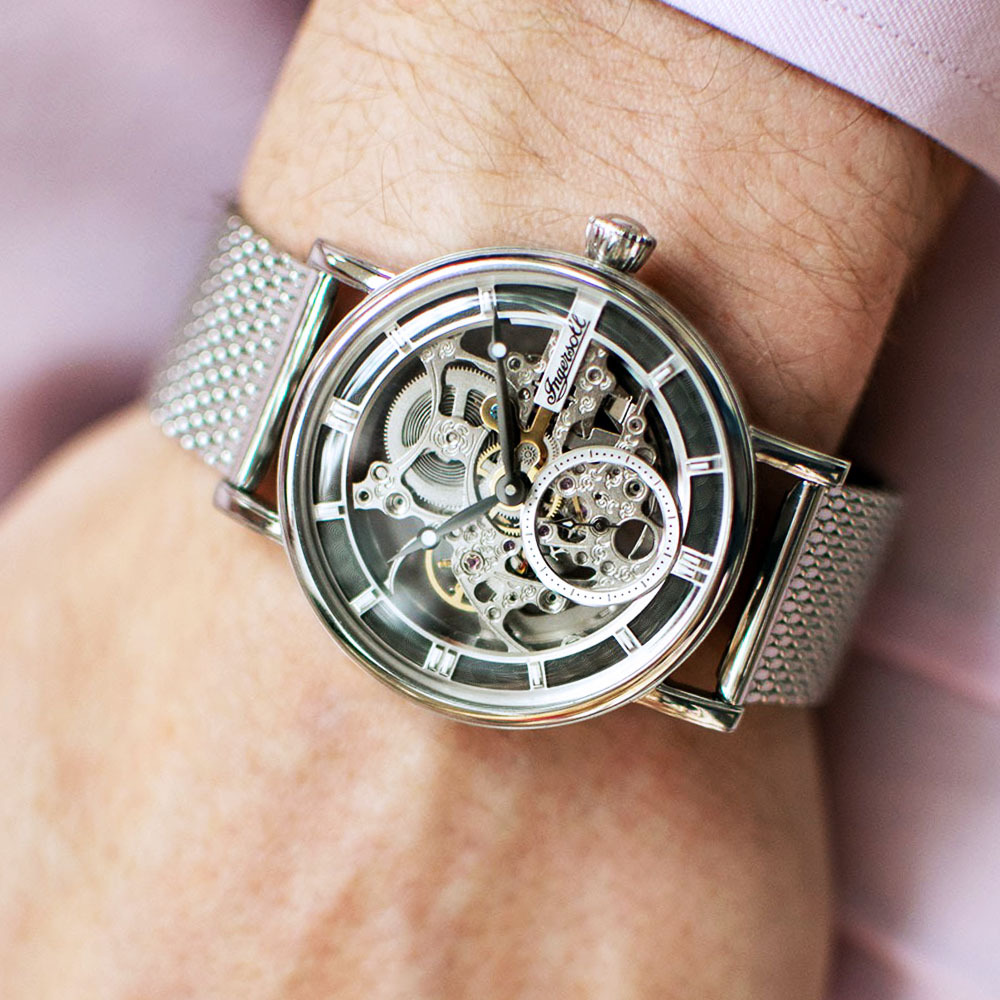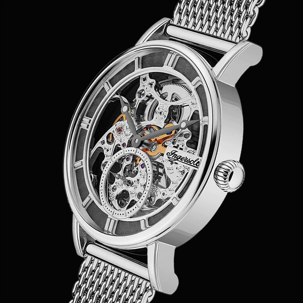爵士樂 (Jazz) 是於19世紀末期至20世紀初起源於美國紐奧良的非裔美國人社區的一種音樂流派,之後逐漸發展成為主流音樂形式。爵士樂與Ingersoll品牌不僅發跡的年代相近,且都與貧窮有所關聯,因此The Jazz爵士錶款對於品牌來說是相當重要的系列。The Jazz爵士錶款與The Broadway百老匯錶款擁有相同的機芯與兩地時間功能,但搭載較小的42mm錶徑卻更厚實的錶殼,將鏤空機芯呈現更深遂的視覺感,並以更多元的色彩搭配包括皮帶、鍊帶、米蘭帶等,更豐富的選擇象徵爵士樂擁有多種流派,也更能展現佩戴者的個人風格。