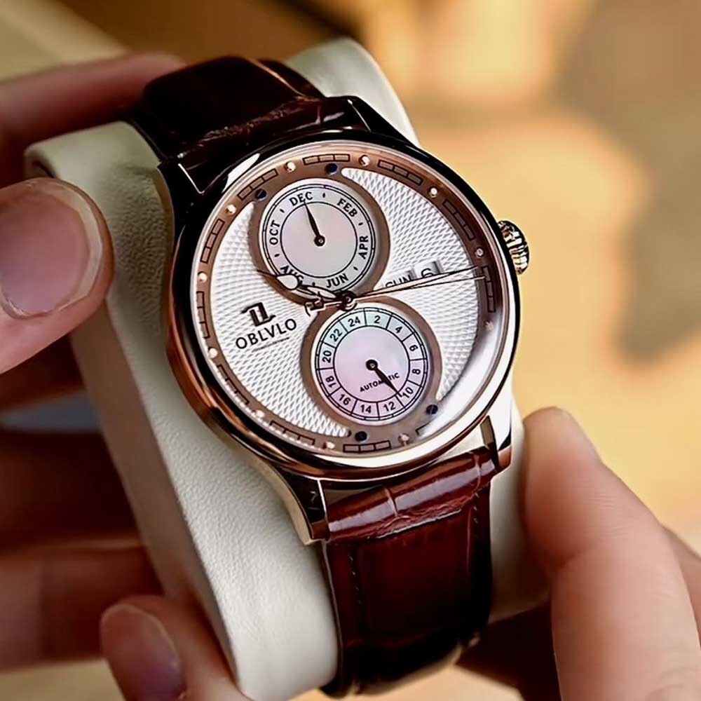 OBLVLO歐弗洛【雙曜典藏】將傳統的製錶工藝與大自然的天然饋贈融合在一起。每一次舉手投足,都能欣賞那道如彩虹般的波光在珍珠母貝盤上跳躍,感受到細膩紋理帶來的多層次美感。
