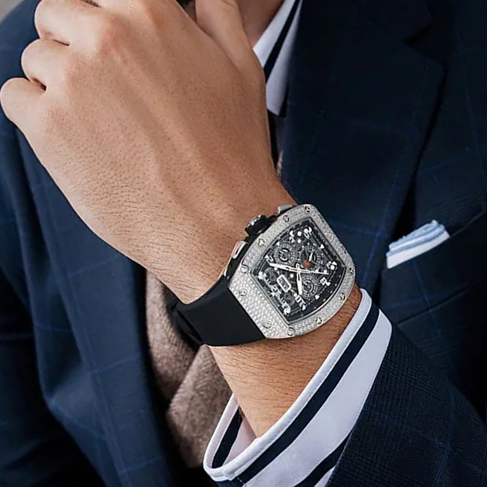 Bonest Gatti 寶加地【尊爵魅影】系列延續「魅影系列」廣受好評的酒桶形錶殼,整體視覺以浪漫星空為繆思,在酒桶形錶殼上鑲嵌璀璨水鑽,做工繁複而細膩,讓原本陽剛率性的運動錶款散發出不同的優雅氣息! 除了耀眼奢華的鑲鑽外框,【尊爵魅影】亦搭載多功能自動上鍊機芯,時、分、秒、日期、月份、星期與日月星辰等多項設計,讓腕錶不再只是腕錶、而是一項兼具實用與美學的工藝傑作!