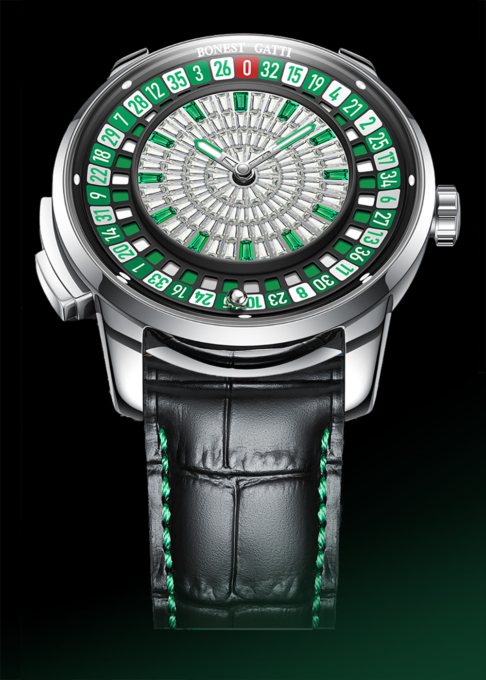 【BONEST GATTI】 輪盤機械錶是一款突破傳統設計框架的時計,它將經典賭場遊戲—Roulette歐式輪盤,巧妙融入錶盤設計中。