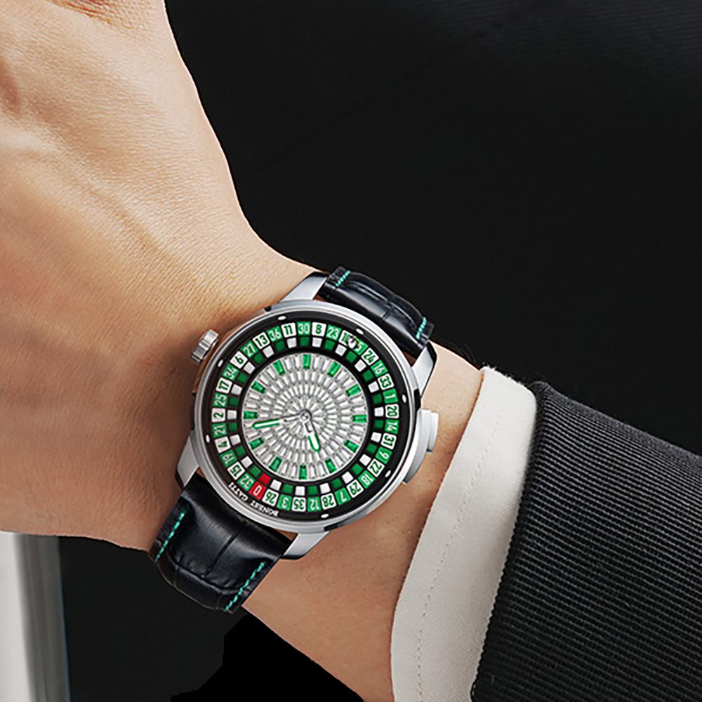 其最大特色便是內建的輪盤功能,只需輕按按鈕,錶盤外圈的數字盤便會如同真正的賭場輪盤般轉動,為你的生活增添一絲驚喜與趣味。
