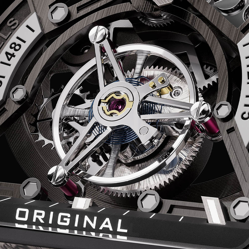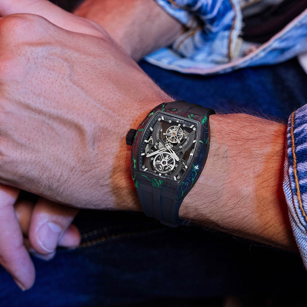 敢於別人所不敢的嘗試,【陀飛輪魅影】系列以鏤空機芯呈現,讓運動錶有了截然不同的味道。鏤空機芯的線條感來自超跑的流線元素,而大膽前衛的撞色與層層堆疊的錶盤設計,更是將機械美學展現的淋漓盡致!