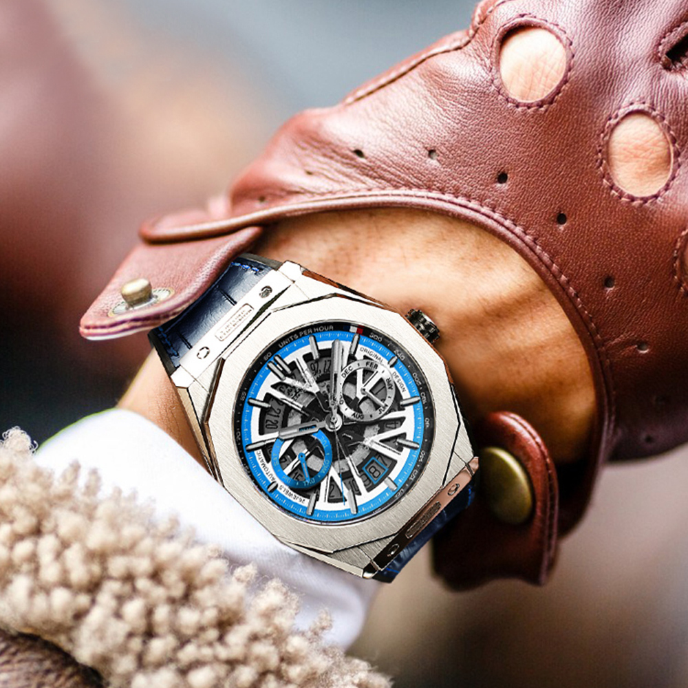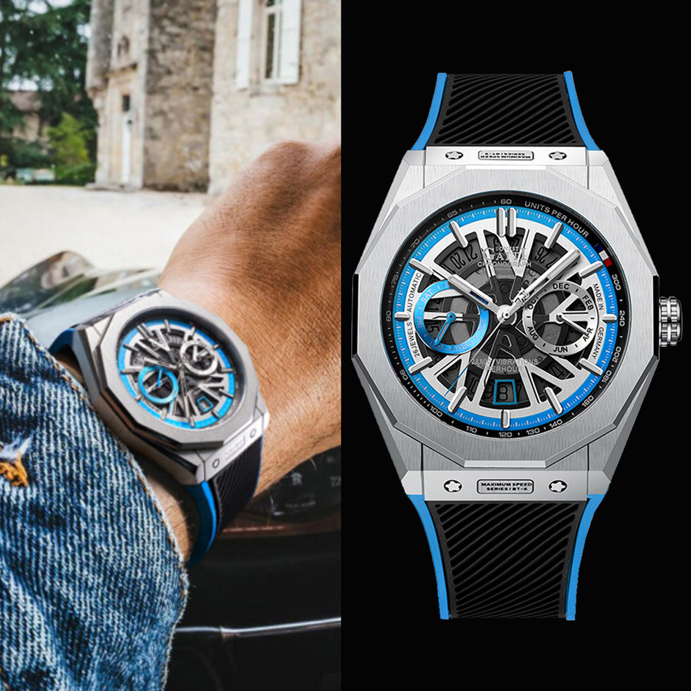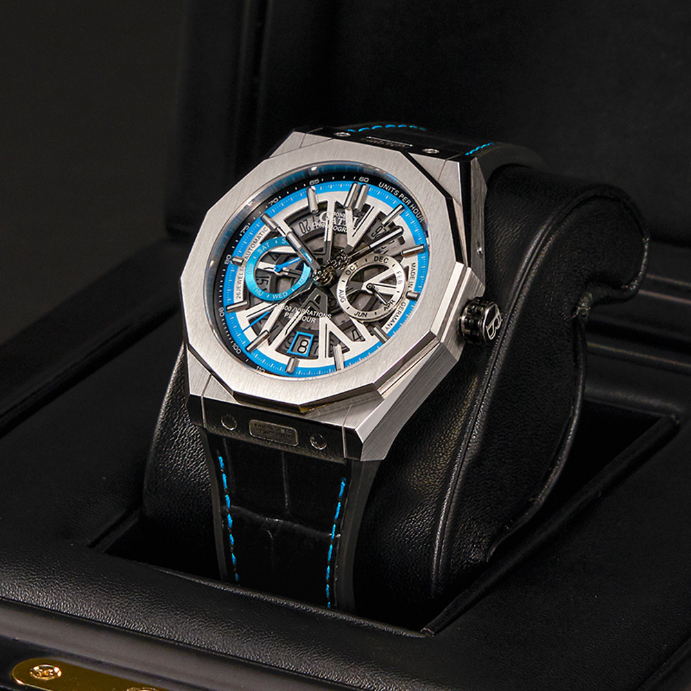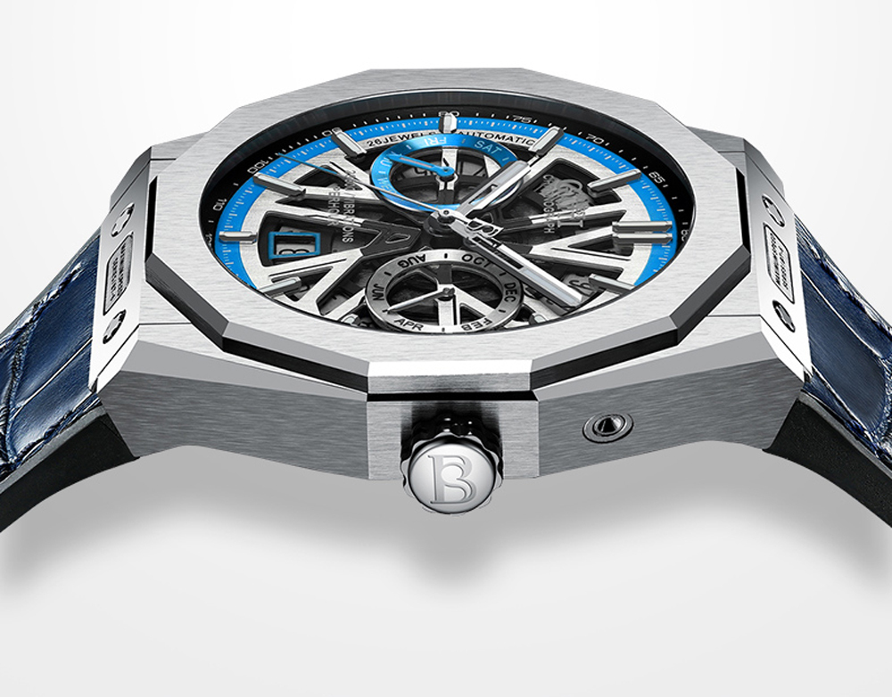 Bonest Gatti 寶加地【King Speed 競速】系列腕錶以稜角分明的錶殼線條,展現超跑奔馳時呼嘯而過的快感;與眾不同的12邊形錶圈,象徵不凡的王者姿態;全系列錶款皆以鏤空面盤呈現,靈感源自於因應賽車運動而生、堅固且輕盈的鋼管車架,並能傳遞機械運作的美感,是超跑腕錶最為畫龍點睛的靈魂所在。