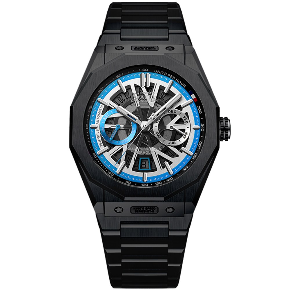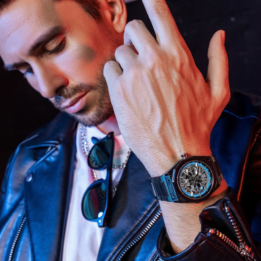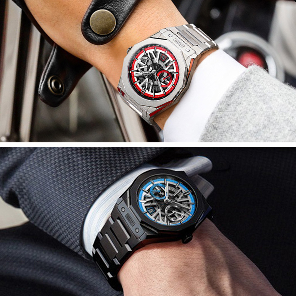 Bonest Gatti 寶加地【King Speed 競速】系列腕錶以稜角分明的錶殼線條,展現超跑奔馳時呼嘯而過的快感;與眾不同的12邊形錶圈,象徵不凡的王者姿態;全系列錶款皆以鏤空面盤呈現,靈感源自於因應賽車運動而生、堅固且輕盈的鋼管車架,並能傳遞機械運作的美感,是超跑腕錶最為畫龍點睛的靈魂所在。