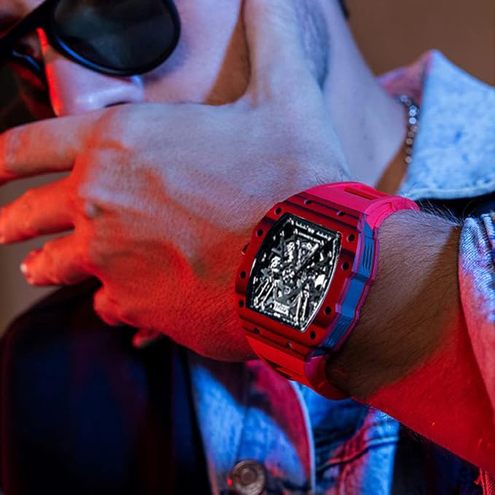 敢於別人所不敢的嘗試,【魅影】系列以鏤空機芯呈現,讓運動錶有了截然不同的味道。鏤空機芯的線條感來自超跑的流線元素,而大膽前衛的撞色與層層堆疊的錶盤設計,更是將機械美學展現的淋漓盡致!
