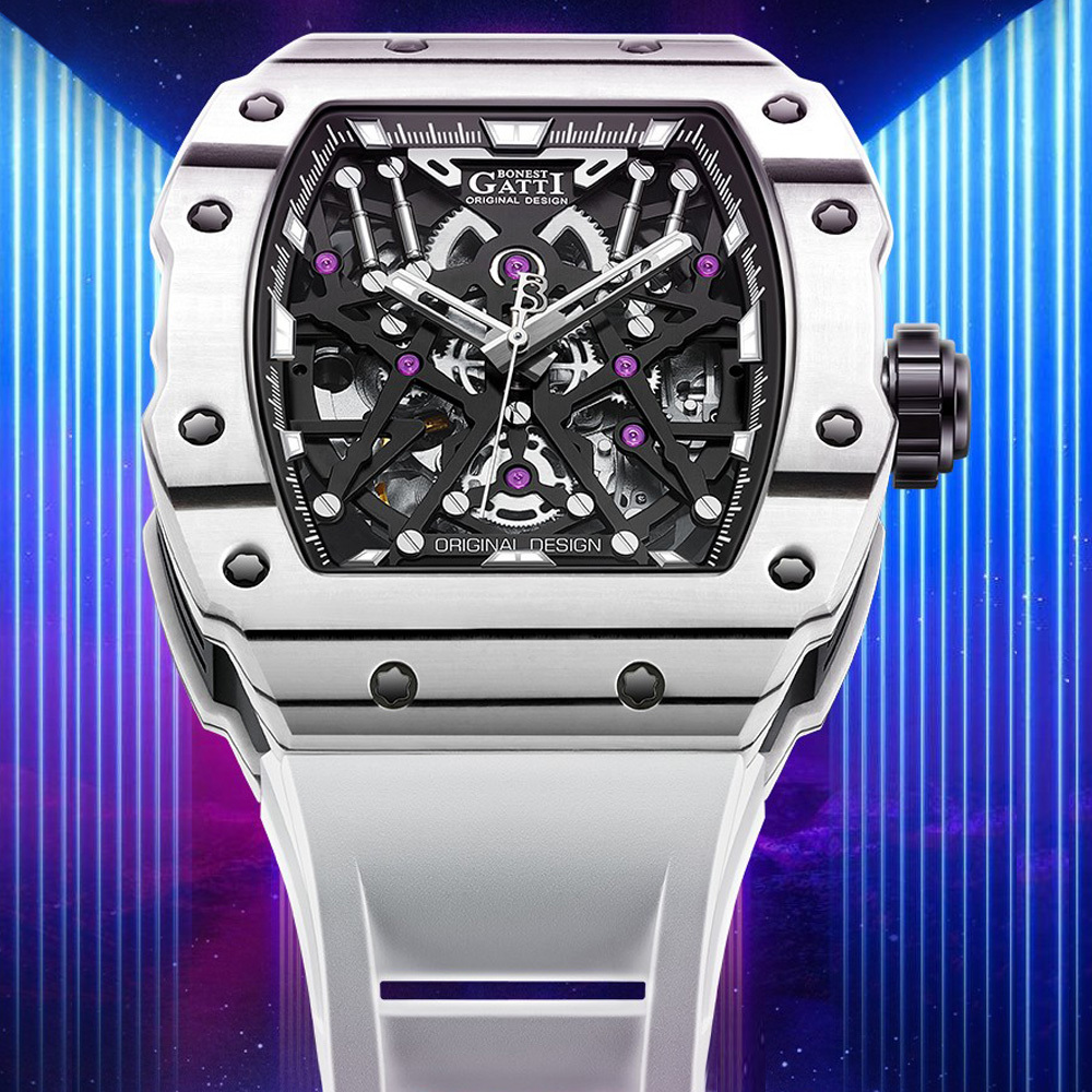 基於對傳統機械錶的熱愛,BONEST GATTI 全系列錶款錶皆採用機械機芯,並且為了強調獨特的個性化,BONEST GATTI 特別將每款腕錶都以撞色與多層次結構的方式進行設計,讓配色與材質的組合更能展現當代潮流元素與動感線條,滿足消費者買到心目中最滿意腕錶樣貌的需求!