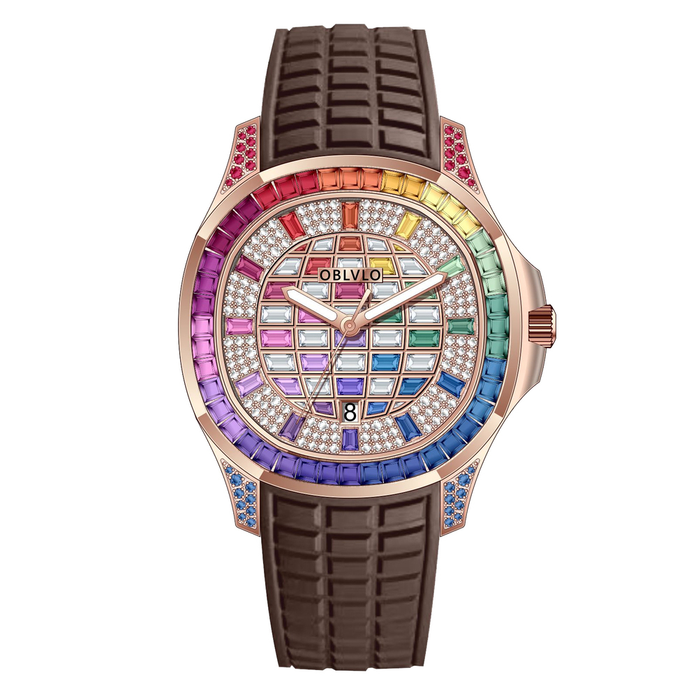 OBLVLO歐弗洛【鑽刻極境】融合極致工藝與珠寶美學的傑作,透過莫桑石與鑽石的密集排列,在藍寶石水晶錶面下構築出迷人的幾何馬賽克棋盤,形成一場關於鑽石、光線與幾何建築美學的華麗冒險。長方形切割寶石鑲邊不僅框住了流溢的光影,更定格了奢華的格律。在光影交織處,邂逅不凡。