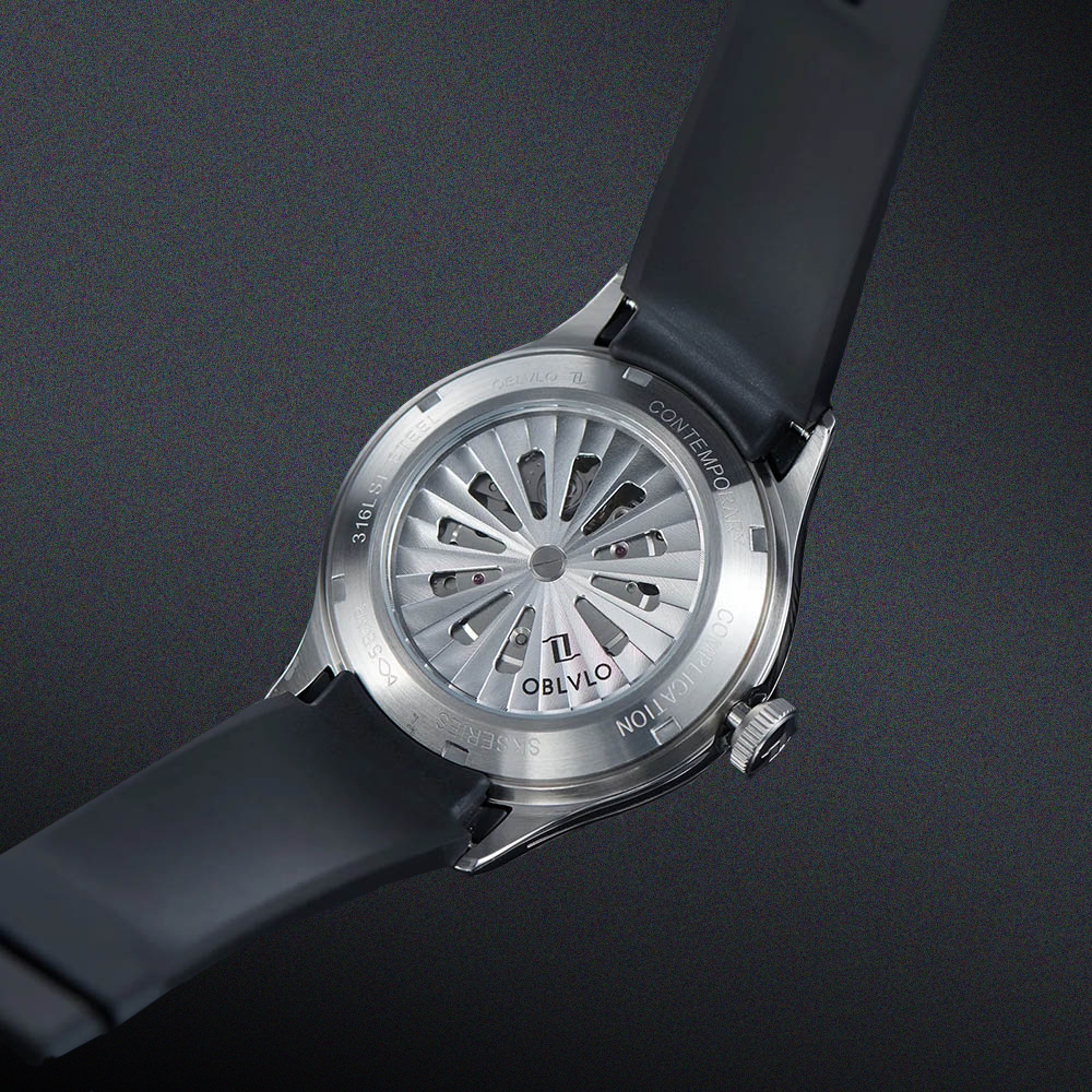 OBLVLO歐弗洛【幽浮系列】創意腕錶,如飛碟般的圓形錶盤,以雷達掃描圖樣重新詮釋時間,旋轉的數字指示窗與中軸指針仿若神秘信號的解碼器。這款錶不只是工具,而是一枚「地表許可的外星科技樣本」。