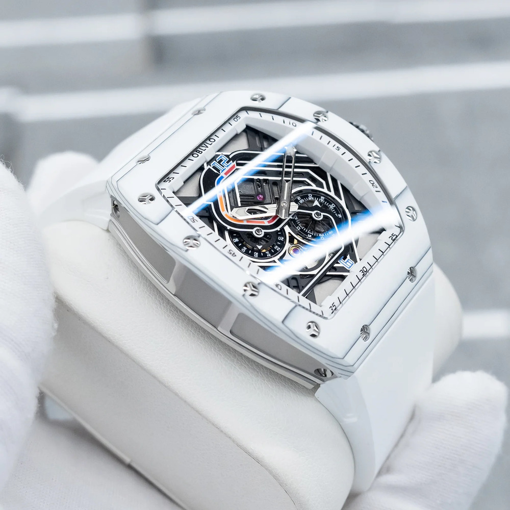 OBLVLO賽道系列不單單只是一枚時計,更是將賽車運動中那份令人屏息的「速度與激情」,濃縮於 44 毫米的空間之中。當你戴上它,就像是扣上了六點式安全帶,手握方向盤,準備迎接那場專屬於自我的、與時間的博弈。