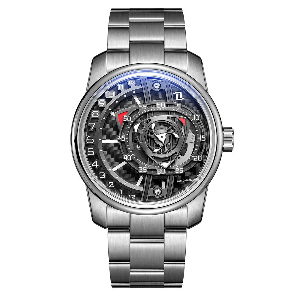有別於絕大多數運動錶款的大三針設計,OBLVLO 歐弗洛腕錶【JM Rotor轉子系列賦予相對罕見轉子造型時分針,增加與眾不同的識別度。縱橫交錯的立體鏤空面盤,取材自引擎內部的機械工藝,而橡膠錶帶輕盈服貼的特性,更是展現轉子引擎體積輕量化與高效能的爆發力。